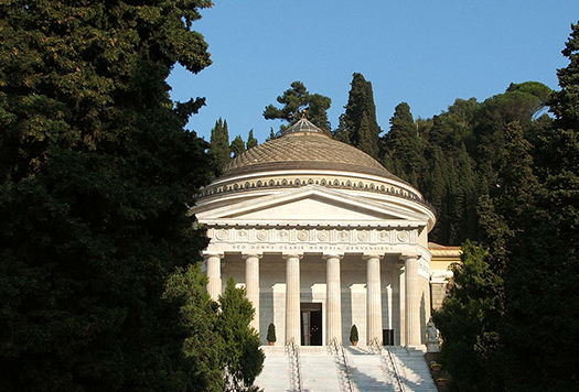 Il tempio, di pianta circolare, ha un diametro di 25 metri. Al suo interno sono disposti 78 loculi dove vengono tumulate personalità celebri su delibera del Comune. Al suo interno, sono sepolti anche il padre e il nonno di Enrico De Barbieri.